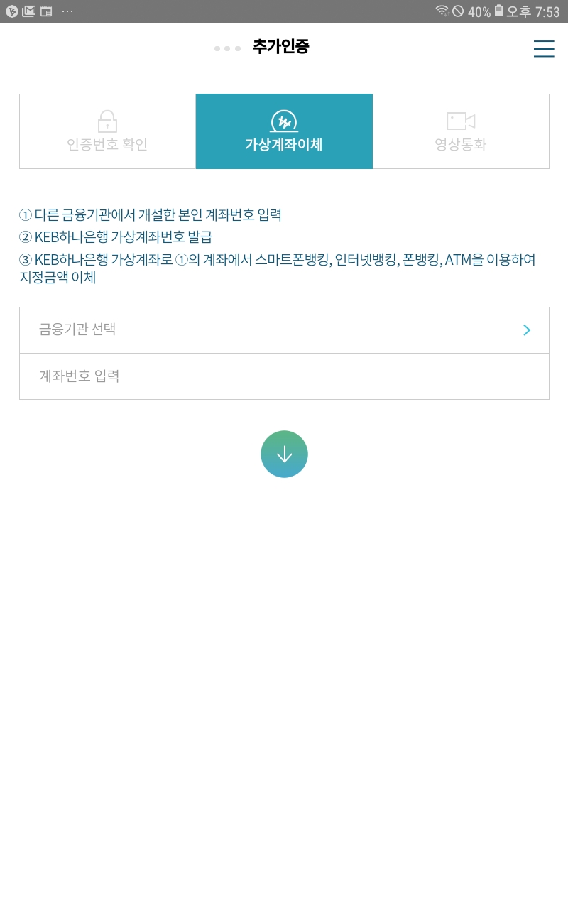 모바일로 접속하려면 하나은행 모바일어플인 하나원큐 어플을 다운받아서 들어가면 됩니다.